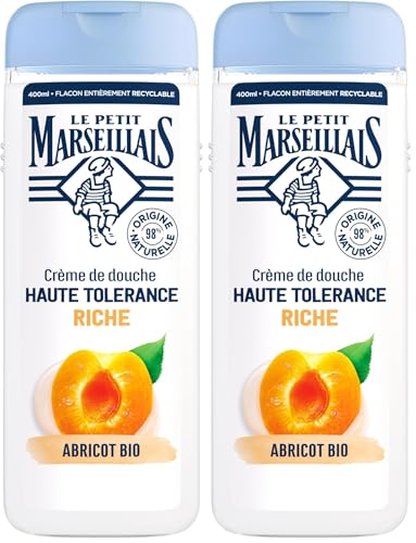 Le Petit Marseillais | Crème de Douche Haute Tolérance Riche Abricot Bio (flacon de 400 ml) – 98% d'ingrédients d'origine naturelle – Gel douche pour peaux sèches et sensibles (Lot de 2)