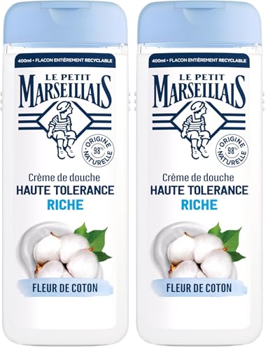 Le Petit Marseillais, Crème de Douche Haute Tolérance Riche Fleur de Coton (flacon de 400 ml) – 98% d'ingrédients d'origine naturelle – Pour tous types de peaux, même sensibles (Lot de 2)