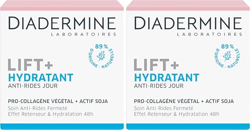 Diadermine - Lift+ Hydratant - Crème Jour Visage - Soin Anti-Rides Ultra Fermeté - Pro-Collagène végétal et actif soja - 89% d'ingrédients d'origine naturelle - Pot de 50 ml (Lot de 2)