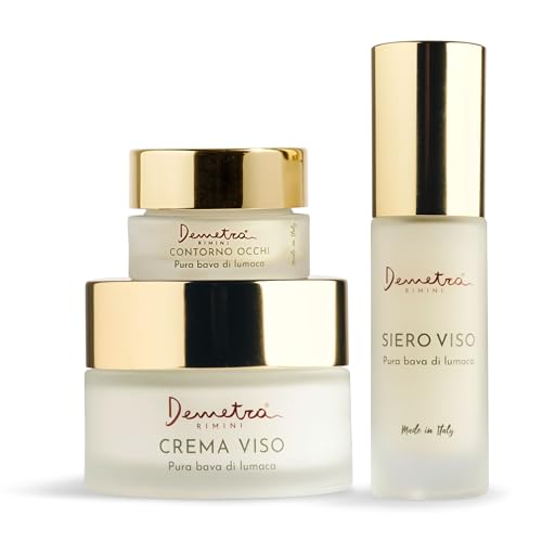 Demetra Kit Skincare 3 en 1 – Crème Visage 85%, Sérum Visage 90% et Contour des Yeux 80% – Bave d’escargot, Acide Hyaluronique, Collagène et Élastine hydrolysés – Soin intensif