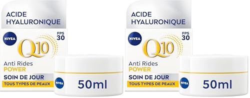 NIVEA Q10 Power Soin de Jour FPS30 (1x50 ml), crème anti rides au Q10 Pur & Acide Hyaluronique, crème anti-âge booster de collagène, soin visage extra fermeté tous types de peaux (Lot de 2)