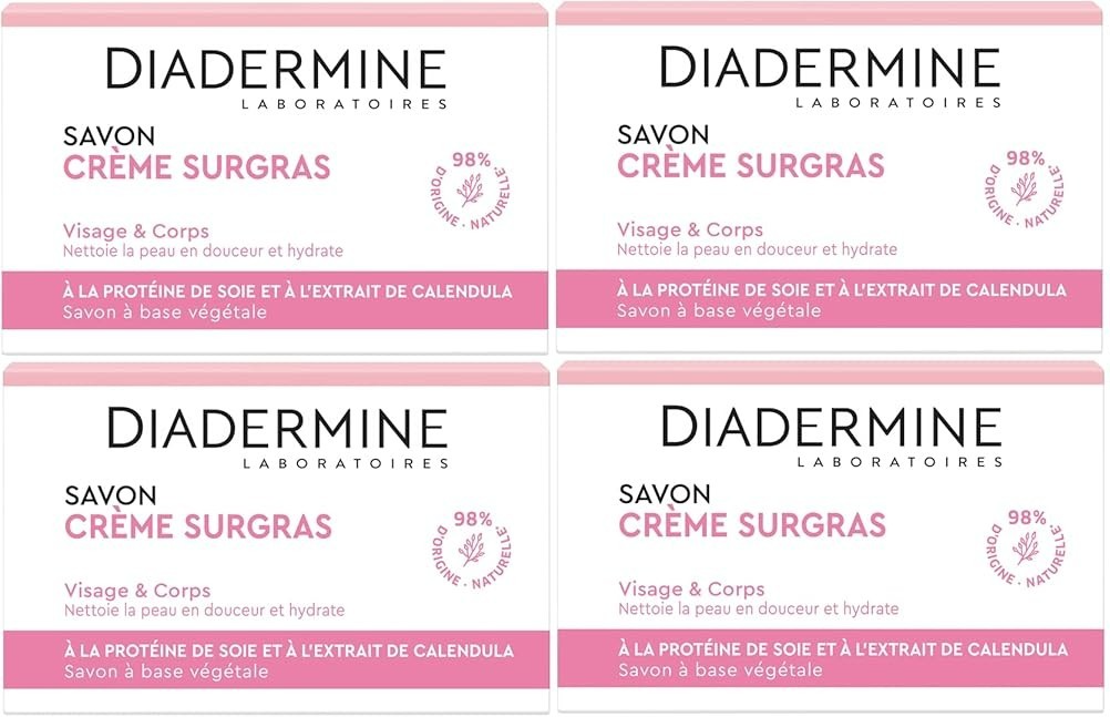 Lot de 4 x 100g Savons Diadermine Crème Surgras Visage & Corps Dermatologique