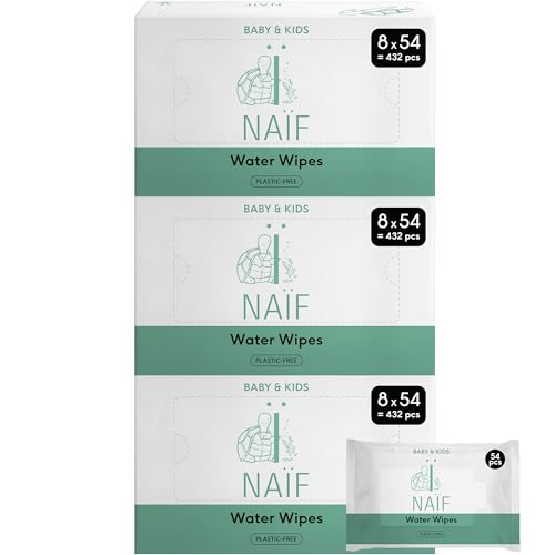 Naïf - Lingettes humides sans plastique - 162 lingettes (3 x 54 lingettes) - Soin des fesses, du corps et du visage de bébé - 99% d'eau - 0% de parfum et d'alcool