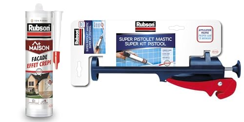 Rubson Mastic Spécial Crépi Ton Pierre, pour Joints de Murs ou Fissures sur Crépi + Rubson Easy Service Pistolet Extrudeur pour Cartouche de Mastic