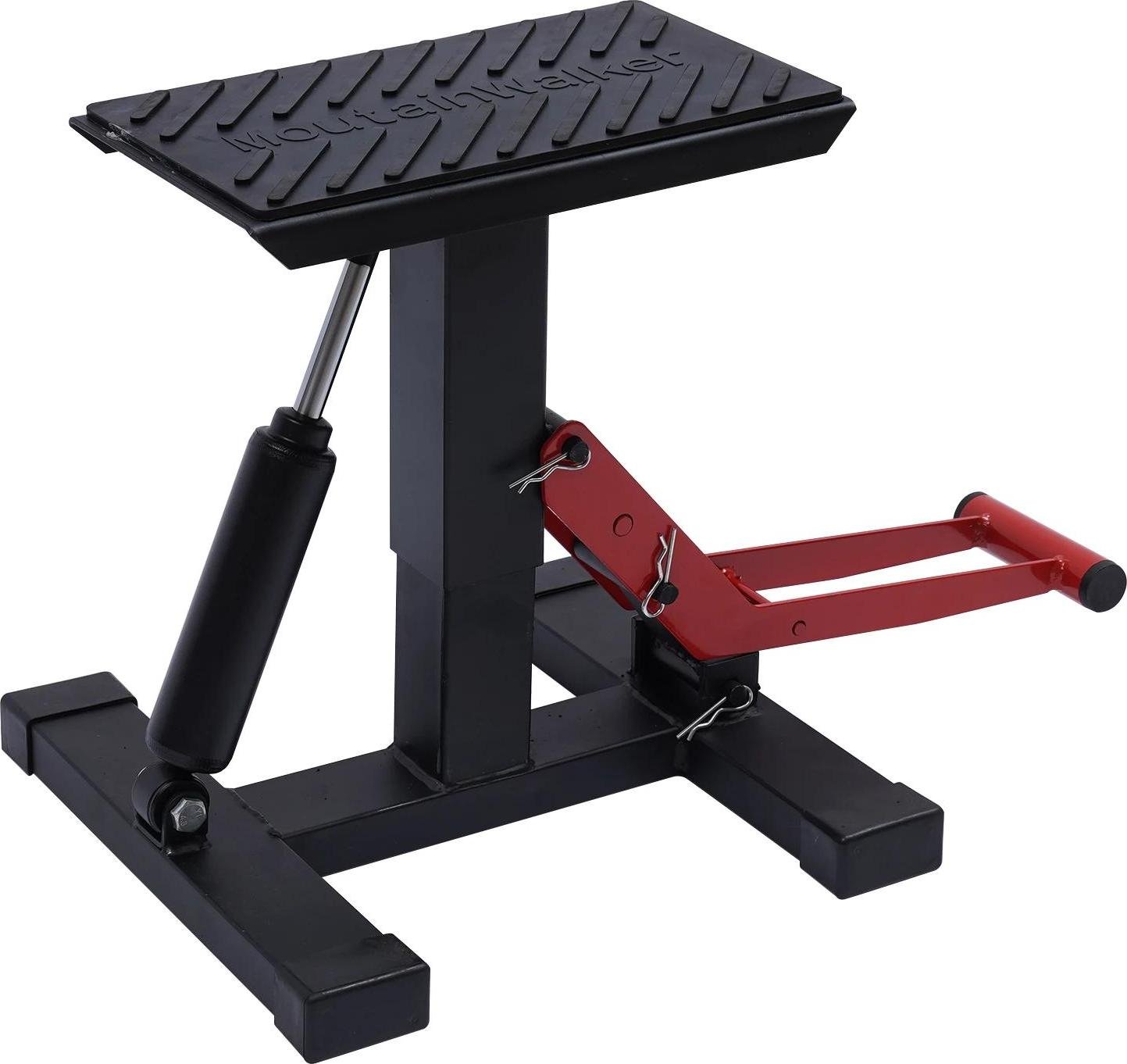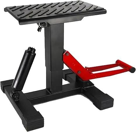 Cric universel pour moto - Support de montage pour motocross - Réglable en hauteur de 24,5 à 35,5 cm - Dimensions 28 × 17,5 × 35,5 cm - Pour l'entretien et le stationnement - Rouge/noir