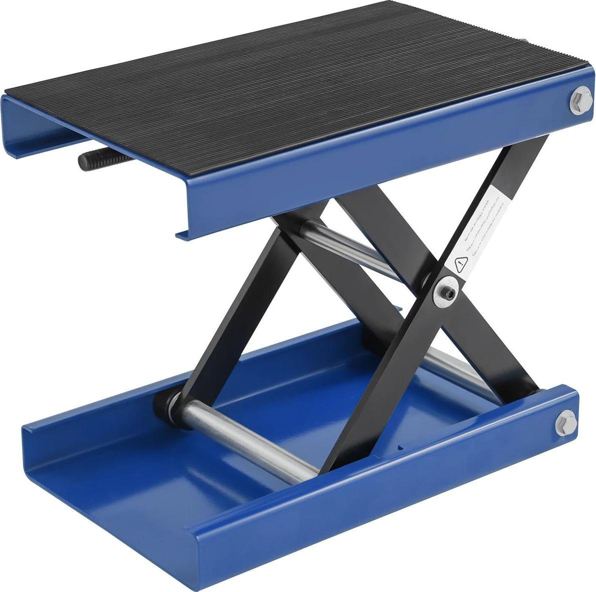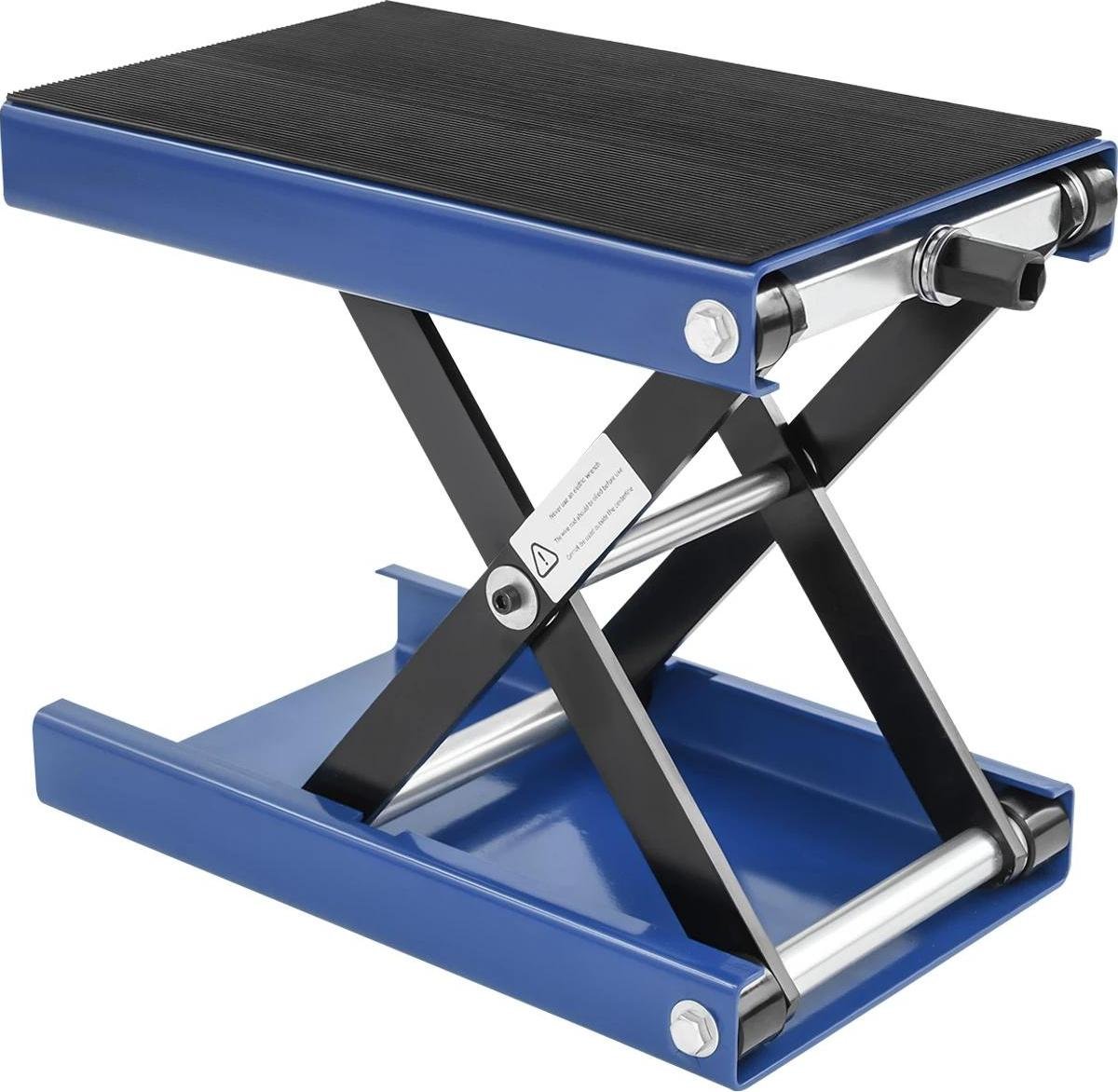 Cric pour moto - Cric à ciseaux - Réglable en hauteur de 9,3 à 35 cm - Capacité de charge 500 kg - Plateforme 37 × 23 cm - Acier et caoutchouc n° 45 - Bleu