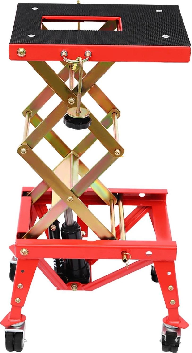Cric pour moto - Cric hydraulique à ciseaux - Capacité de charge 680 kg - Plage de levage 11,5-36,5 cm - Réglable - Portable - Boulon de sécurité - Rouge