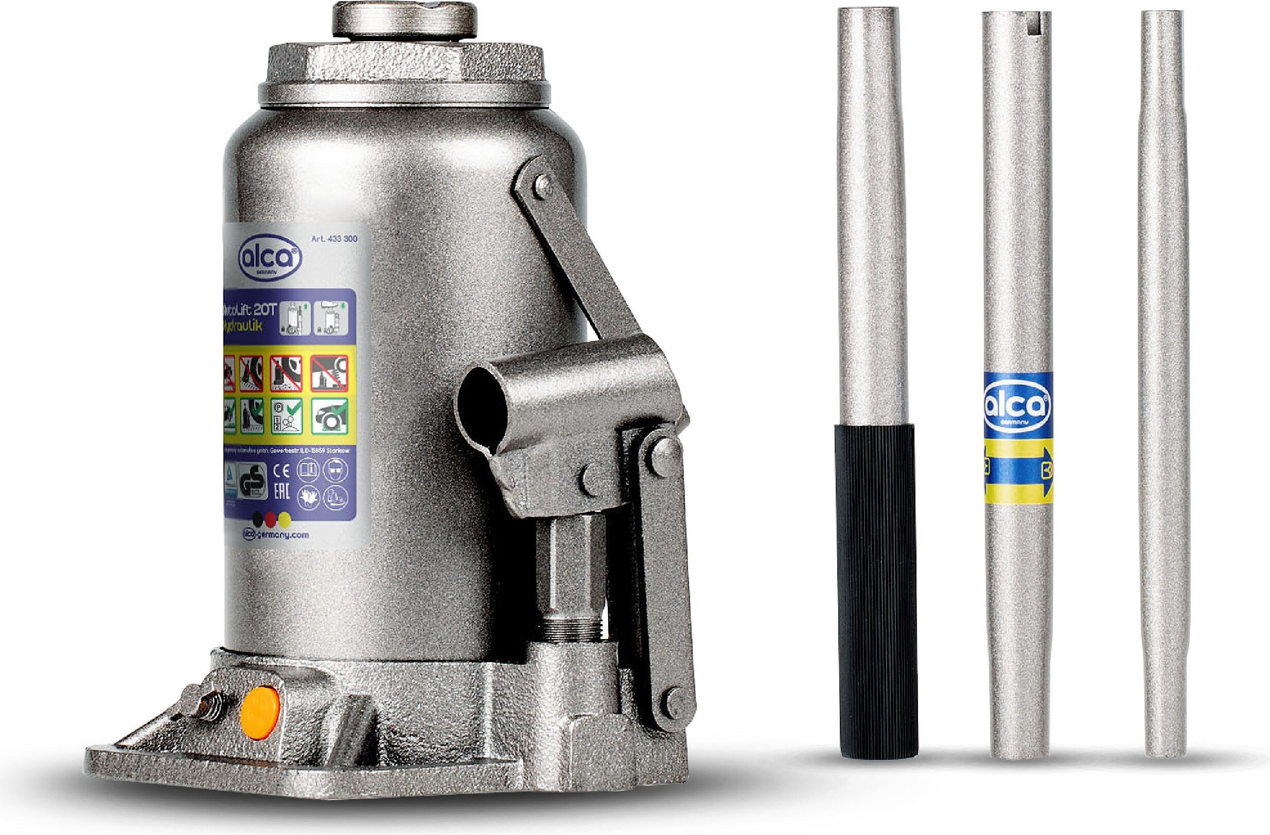 alca® cric hydraulique 20t I cric à piston & cric sous châssis en acier I pour auto, moto, voiture & atelier I hauteur de levage 244-449 mm I & GS