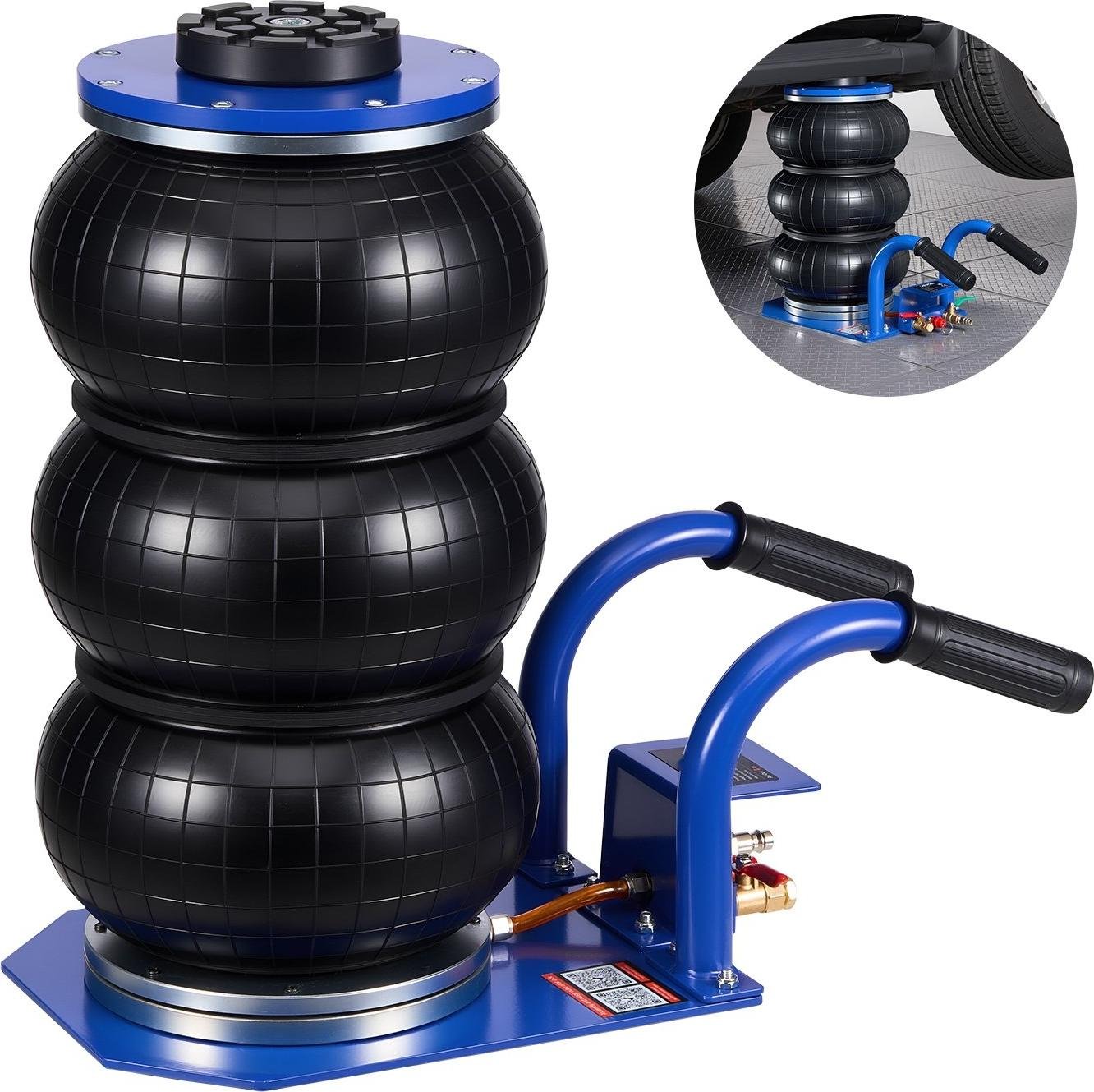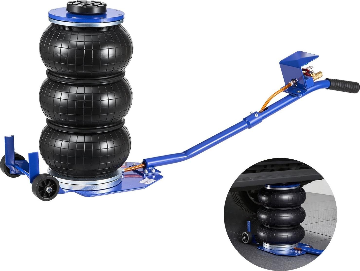 Cric pneumatique à air comprimé - Cric à coussin d'air 3 t - Triple soufflet - Hauteur de levage max. 45 cm - Levage rapide - Poignée courte - 6 tubes en acier - Pour voitures, SUV, pick-ups