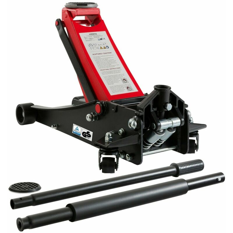 Arebos - Cric hydraulique 3 tonnes - 75-505 mm - Dual Pompe - Avec 3 Patins - Tige de Levier - Noir et Rouge