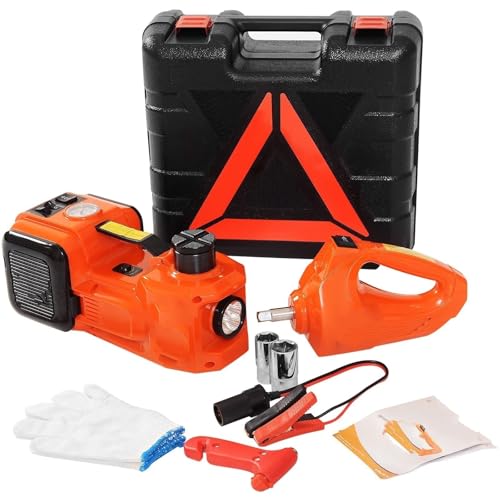 TaskStar Cric Hydraulique 5 tonnes 3 tonnes, 12V Cric électrique Voiture Kit (Portée :15,5-45 cm) avec clé électrique et gonfleur, pour Voiture Pickup Changement de Pneu Garage Réparation