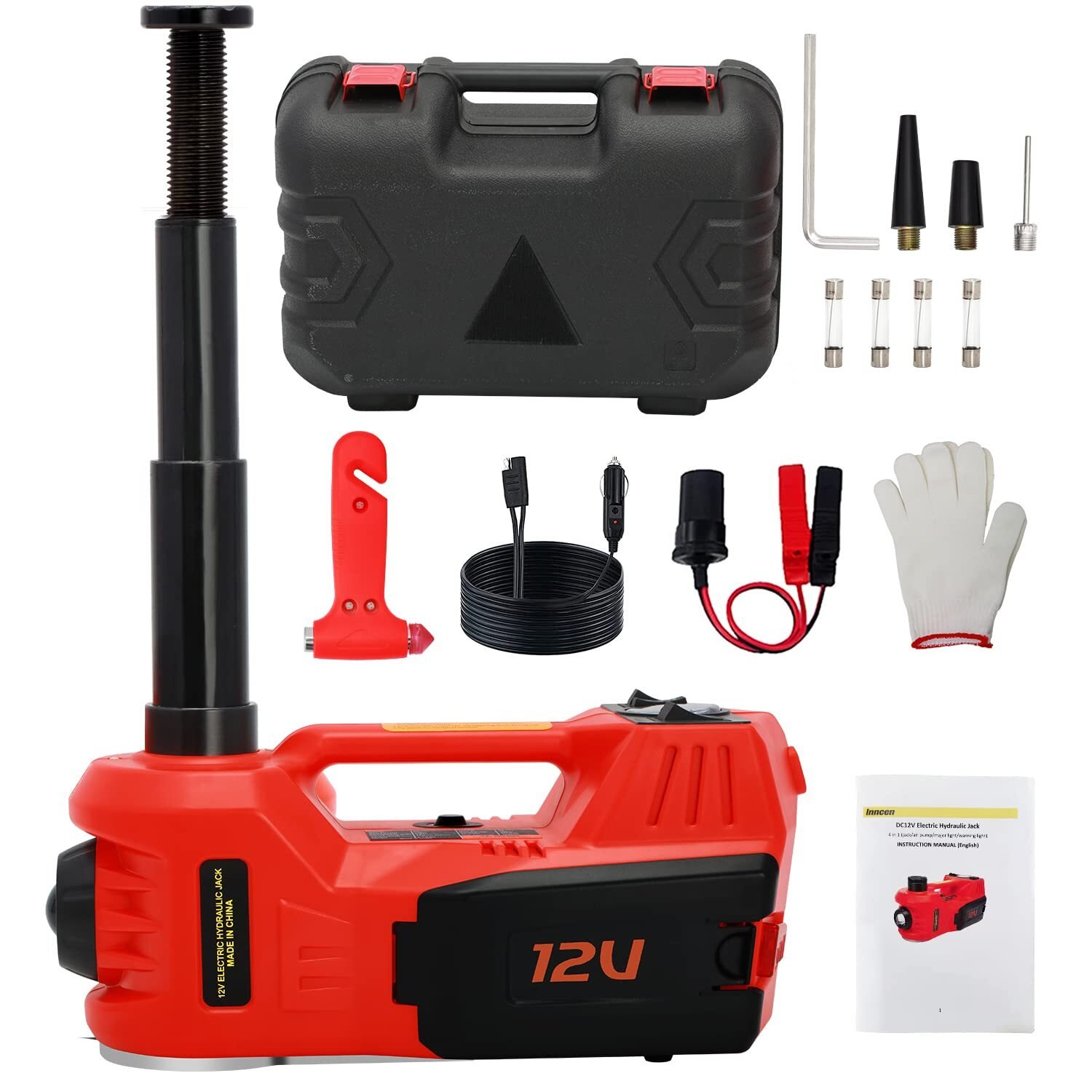Cric électrique, 12V 5T cric hydraulique (15-45 cm) avec tuyau gonflable, et lumière, pour voiture, SUV, berline, MPV, changement de pneus