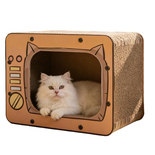 Casetta Per Gatti In Cartone - Tiragraffi Protettore Per Mobili Da 15,7 Pollici | Cuccia Per Animali Con Fondo Antiscivolo, Giocattolo Di Arricchimento A Forma Di TV Per Gattini, Coniglietti, Criceti,