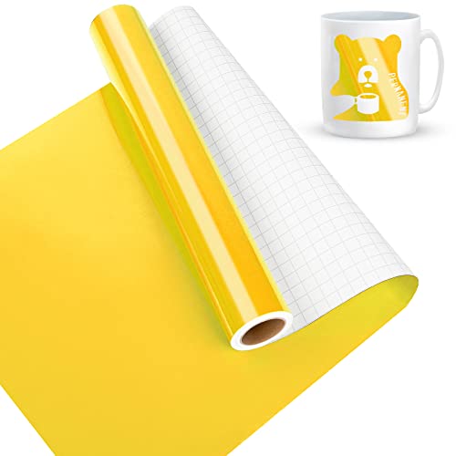 Vinyle Adhésif Jaune Brillant, 30 x 457 cm Vinyle adhésif Jaune pour Cricut, Silhouette Cameo, Vinyle permanent pour Cadeaux de Bricolage, Mug