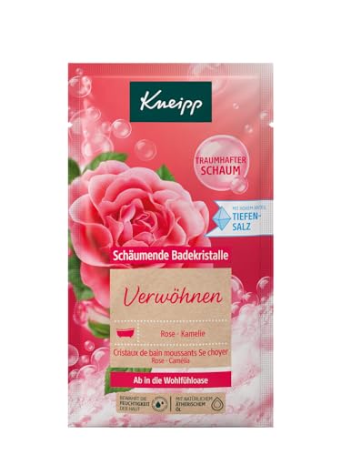 Kneipp Cristaux de bain - Sels de bain avec sel profond et combinaison d'huile essentielle naturelle de rose de Damas et d'huile de camélia nourrissante - Mousse de rêve longue durée - 80 g