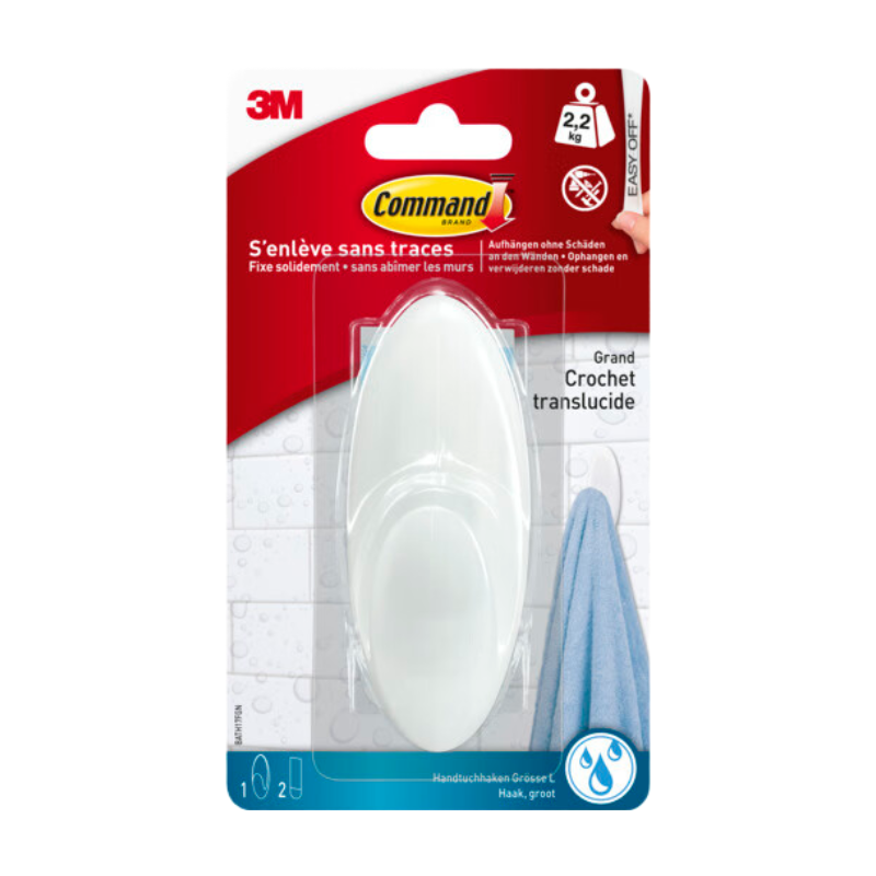 3M Command™ BATH17FGN Grand crochet pour serviette pour salle de bain 114 x 41 x 38 mm Blanc 1 pièce