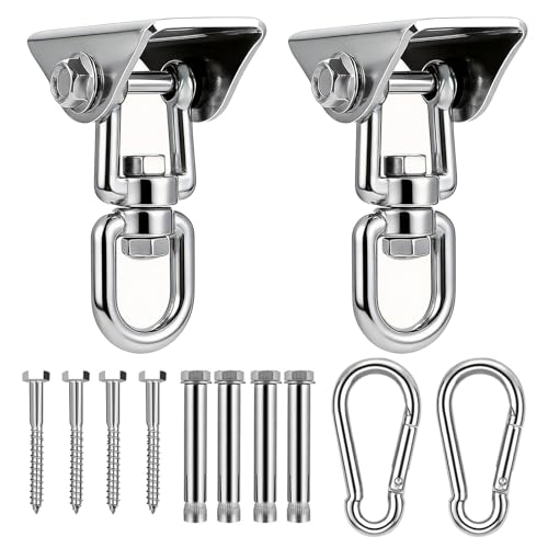 Yyiwhmy Lot de 2 crochets de plafond pour charge lourde, fixation de hamac en acier inoxydable de qualité supérieure, rotation à 180 °, pour fauteuil suspendu avec vis, crochet de balançoire, convient