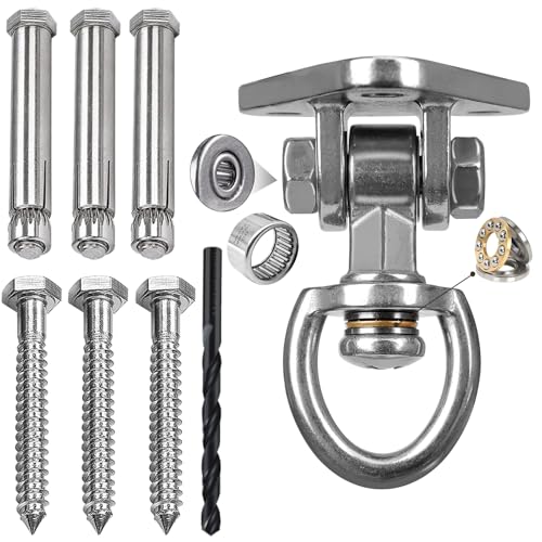 CNCYEAH Crochet de plafond pour fauteuil suspendu - Charge lourde - 450 kg - Support de plafond rotatif à 360 ° - En acier inoxydable 304 - Avec vis pour fauteuil suspendu, balançoire, serviette de