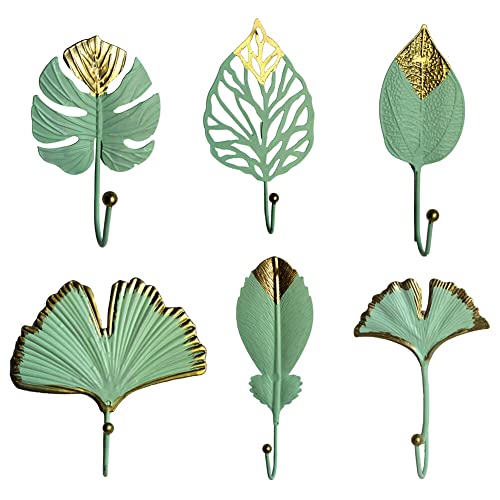 Katutude Lot de 6 Crochets Décoratifs en Fer en Forme de Feuille Crochet Adhésif Crochet Mural Feuilles Décoratifs Muraux Vintage pour Vêtements, Sacs à Main, Écharpes, Clé