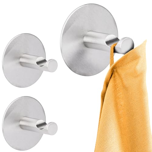 RICOO Crochet Adhésif Mural en Acier Inoxydable, Lot de 3, MH016-3 Crochet Autocollant Moderne pour Salle de Bain et Cuisine, Patere porte manteau,Crocher adhesif pour mur Ø 5x3,8 cm