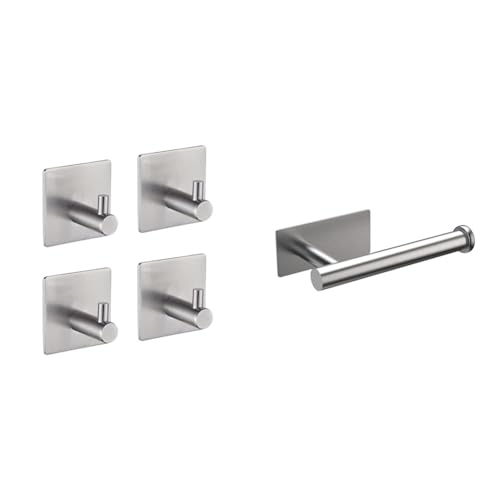 Ibergrif MK34251A, 4 Pièces Crochet Adhésif 3M, Crochet Adhésif Mural de Salle de Bains & MK34052, Porte Papier Toilette, Support Papier Toilette Mural, 304 Acier Inoxydable