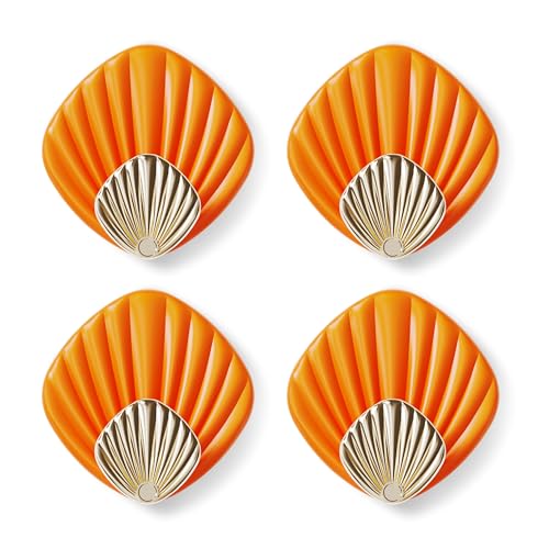 RICOO Crochet Adhésif Mural en forme de coquillage, HP004-O Crochet Autocollant Moderne pour Salle de Bain et Cuisine, Patere porte manteau, Crocher adhesif pour mur, Lot de 4, Orange