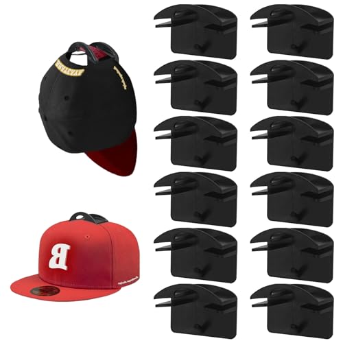 FYting 12 Pièces Crochet à Chapeau,Rangement Casquette,Crochet de Chapeau Auto-AdhéSif Sans Couture, Crochet de Chapeau Mural pour Casquettes de Baseball,Chapeaux de Soleil (Noir)