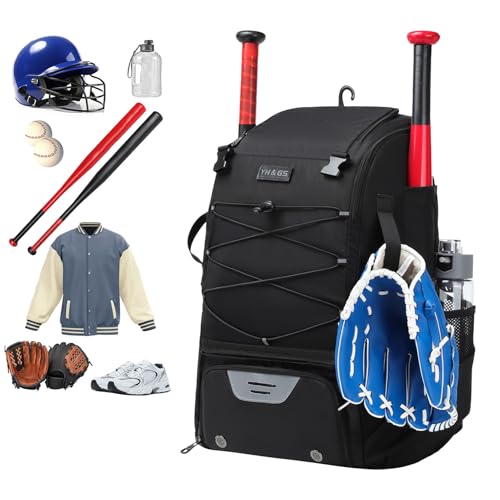 Sac de baseball - Porte-battes légers et équipements, Organisateur d'équipement de baseball pour garçons, Sac de softball, Crochet de clôture, Porte-casque et casquette | pour garçons adultes Te