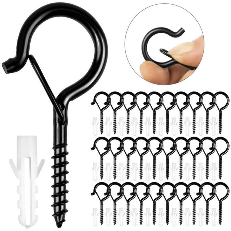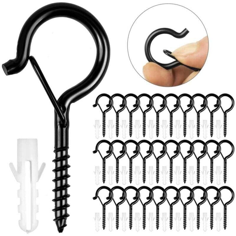 Jalleria - Piton à Visser Noir 30 Pièces Crochet à Visser Charge Lourde Avec Boucle de Sécurité Crochet de Plafond Bois Pour Suspendre des Paniers à