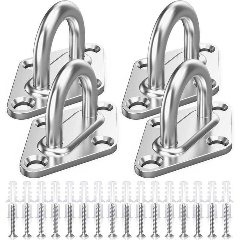 LPZMPZ Crochet Suspension de Plafond Charge Plaque Oeillet à œIl en Acier Inoxydable 304 à Boulonner 450 KG Capacité avec 4 Vis Fixation pour Lourde Chaise Fauteuil Yoga Hamac Sac de Boxe