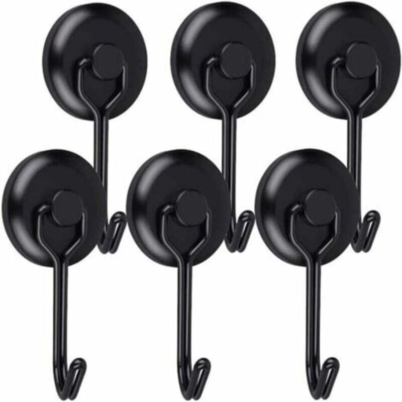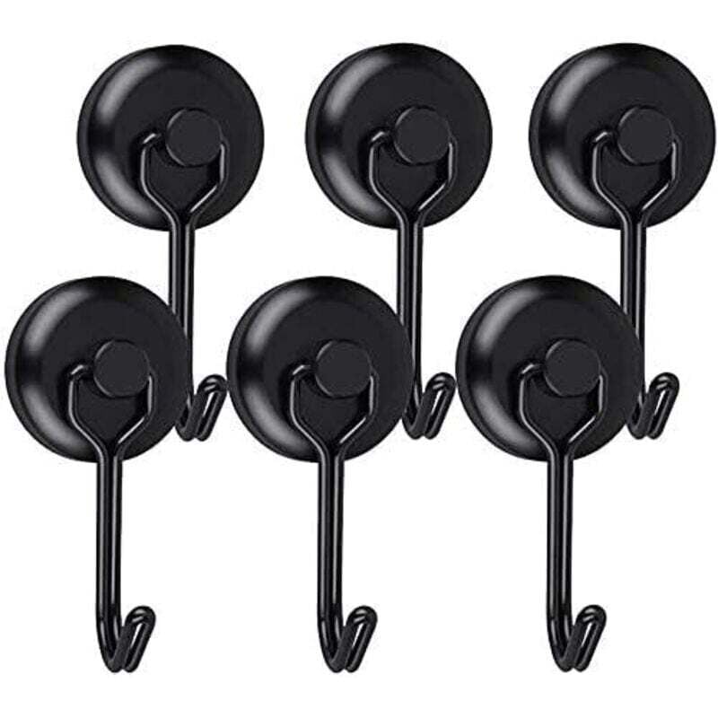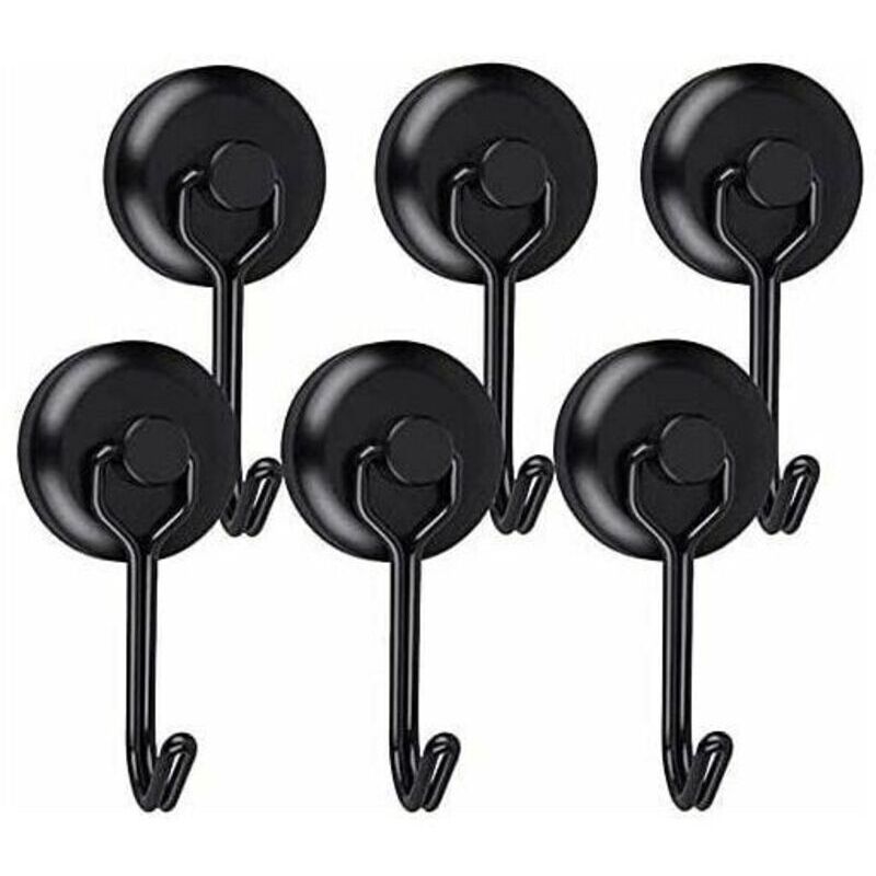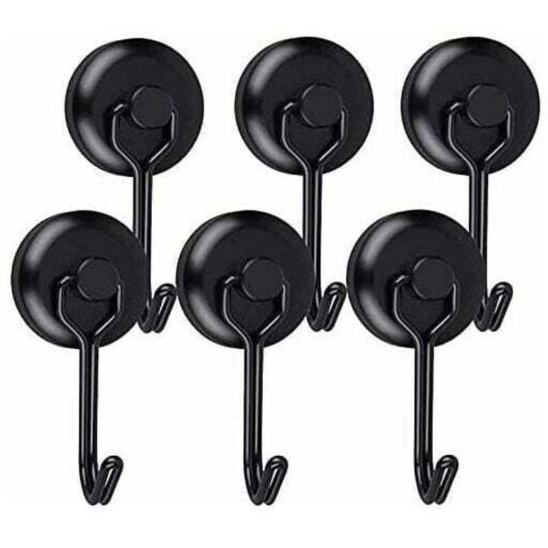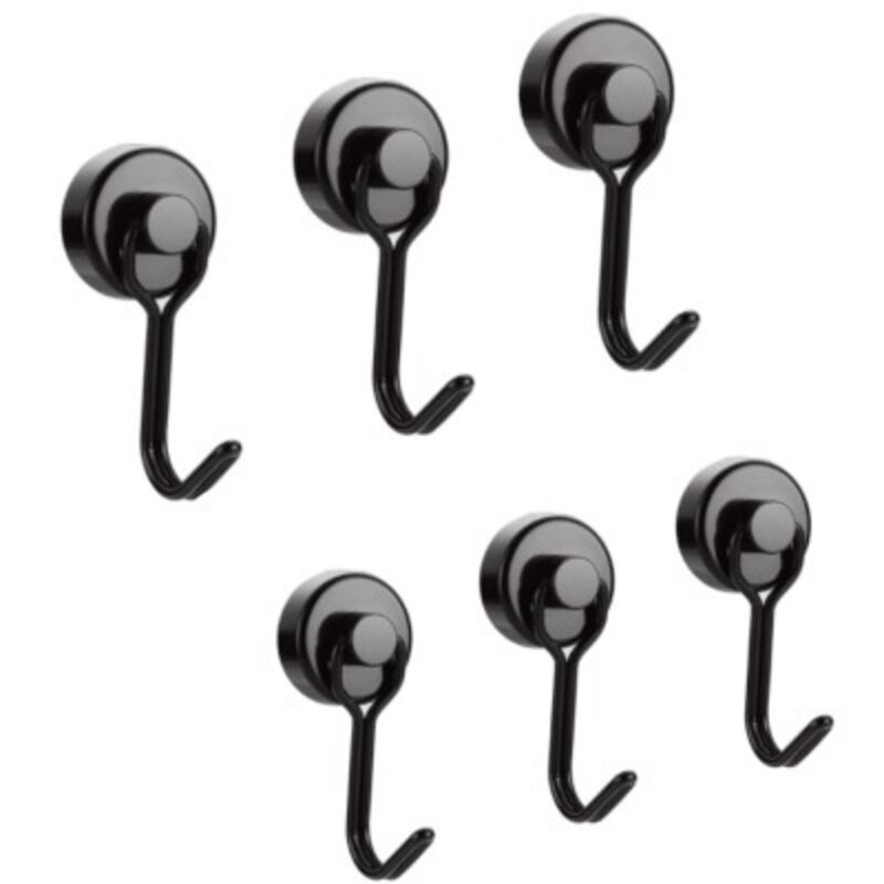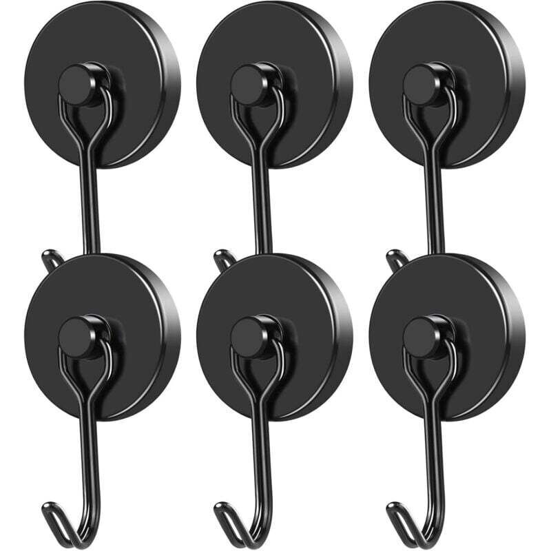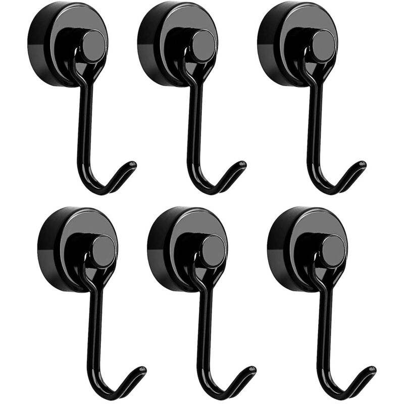 Crochet Aimanté Puissant 14 Kg 20d Crochet Magnetique Frigo Noir Néodyme Pivotants Aimant Crochet Magnétique 6pcs