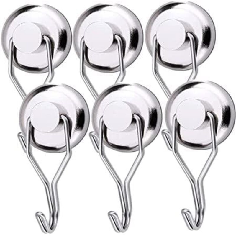 Crochet Aimanté Puissant 45KG 32D Crochet Magnetique Frigo Argent Néodyme Pivotants pour Cuisine Torchon Tableau 6pcs