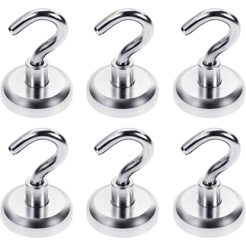 19KG Crochet Aimanté Neodyme, XU, 6 Pièces Porte Manteau Aimanté Puissants, 25mm Aimant Crochet Magnetique Puissant, Oeillets Aimants Crochet pour