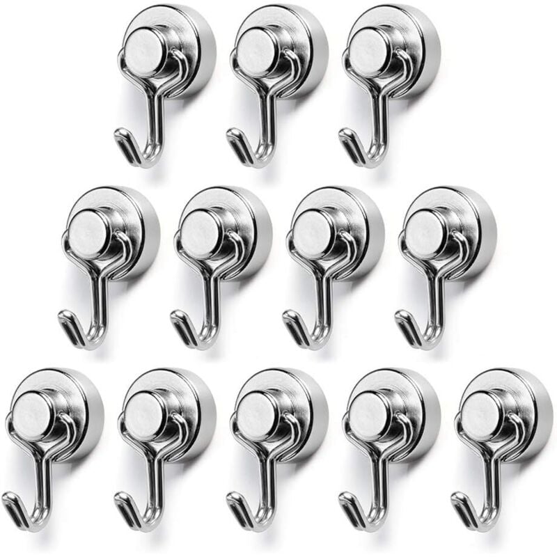 12 Pièces Crochet Magnetique 8 kg Aimant Puissant Neodyme Crochet pour Frigo Cuisines Bureau École Crochet de Croisière Robuste au Plafond Argenté