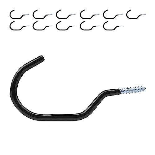 JJiaoLinin Piton à Visser Noir,12 Pièces Crochets à Vis Crochet Mural a Visser avec Chevilles Murales Q-Hanger avec Boucle de Sécurité Crochet à Visser Charge Lourde pour Suspendre des Plantes en Pot
