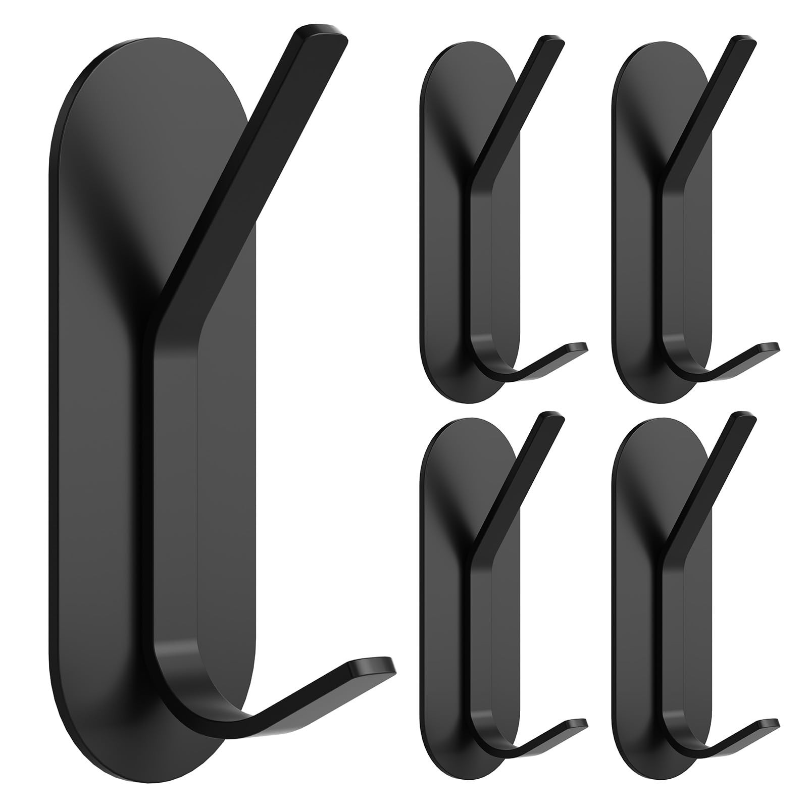 Alyvisun 5 Pièces Crochet Adhesif Mural, Autocollant Accroche Serviette Charge Lourde Accroche Torchon Cuisine en Acier Inox, Porte Manteau Mural Sans Percage pour Salle de Bain (Noir)
