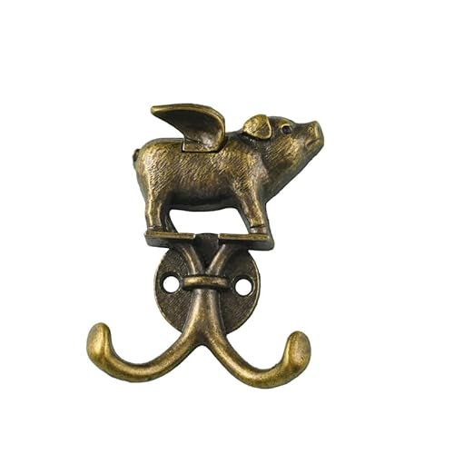Petit crochet polyvalent en alliage de zinc vintage pour la cuisine de salle de bains de ferme Mignon cochon volant mur décoratif Double crochet pour accrocher manteau clés chapeaux serviette