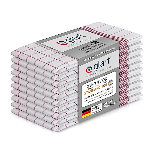 Glart 48KR2 Lot de 10 torchons 50x70 cm, rouge à carreaux - 100% coton, certifié OEKO-TEX, prélavé, absorbant, lavable, durable, avec crochet, pour maison, cuisine, restauration, bureau