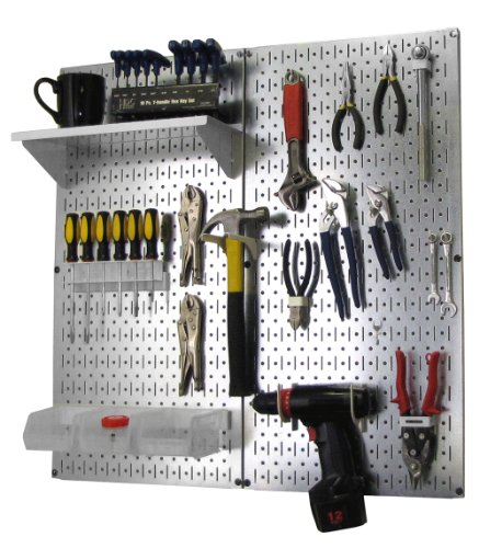 Wall Control Organiseur de panneau perforé en métal pour outils et garage avec panneau perforé métallique et accessoires blancs