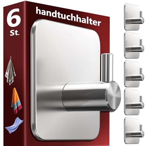Menz Lot de 6 porte-serviettes sans perçage - En acier inoxydable extra solide - Idéal comme crochet pour serviette de salle de bain et cuisine - Crochets autocollants de qualité supérieure avec