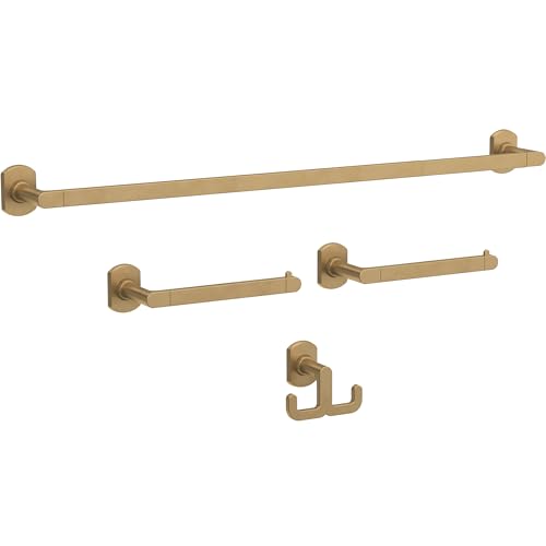 Franklin Brass GRNV64-SG Granville Lot de 4 Accessoires de Salle de Bain 45,7 cm Barre Porte-Serviette avec rallonge, Support de Papier Toilette, Porte-Serviette, Crochet pour Serviette en Or satiné