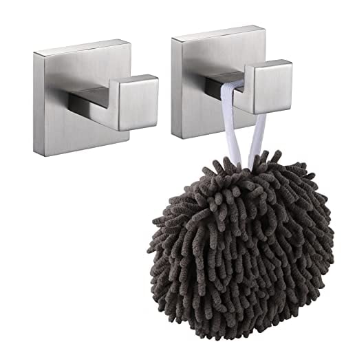 KOKOSIRI Crochet mural carré pour serviette de bain, peignoir, manteau, salle de bain, cuisine, garage, montage mural, acier inoxydable SUS 304, nickel brossé, B1010BR-P2