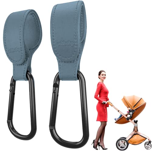 Edibaby, Crochet Poussette, Styl Cuir, 2 Unités, Ajustement Universel, Mousqueton Poussette, pour accrocher des Sacs, Sacs à Dos, Sacs à Main etc (Gris)