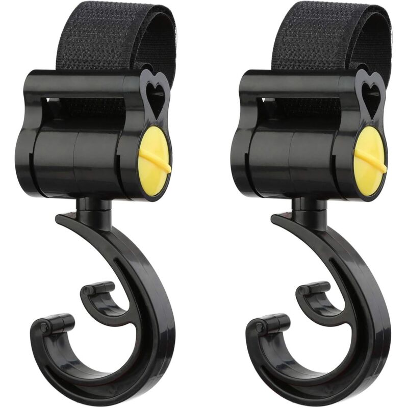BABIDU Crochet pour poussette de bébé, ajustement universel et résistant, idéal pour accrocher des sacs, sacs et sacs à dos, accessoires de poussette, rotation à 360°, crochet poussette bébé
