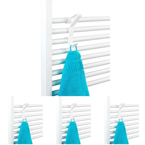 WENKO Crochet pour radiateur sèche-Serviettes Universel Flexi - Plastique (ABS), 2.5 x 13.5 x 8.5 cm, Blanc (Lot de 4)