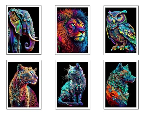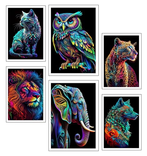 Lot de 6 tableaux avec base en bois pour décoration de salon modernes, chambres à coucher, chambre à coucher, nature et animaux avec crochets métalliques (38 x 29 cm chaque tableau)