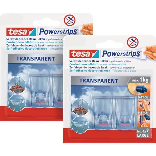 tesa Lot de 4 crochets adhésifs invisibles pour miroirs et surfaces transparentes Capacité jusqu'à 1 kg par crochet 8 bandes adhésives