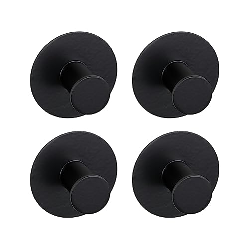 WENKO Crochet mural Celano noir | Set de 4 crochets adhésifs en inox pour salle de bain | Crochet sans perçage design | Dimensions Ø 5 x 3,3 cm | Métal noir élégant et résistant
