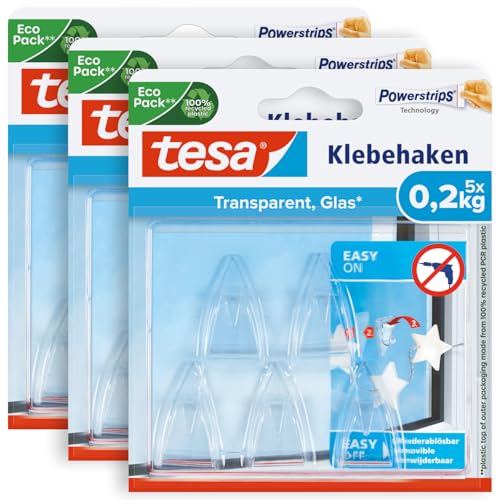tesa Powerstrips Crochets Déco en paquet de 3 - Crochets Adhésifs pour la Décoration des Fenêtres et des Miroirs - Maintient jusqu'à 200 g - 3 x 5 Crochets