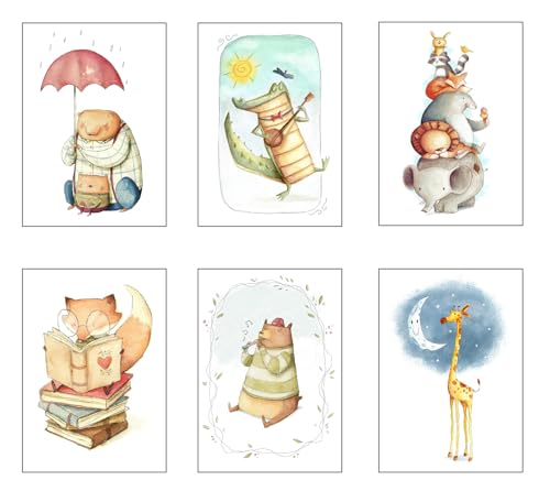 DKORARTE Bestpricepictures Lot de 6 tableaux en bois avec crochets métalliques pour salon, chambre d'enfant, dessins animaux, peluches avec crochets métalliques (29 x 20 cm chacun)